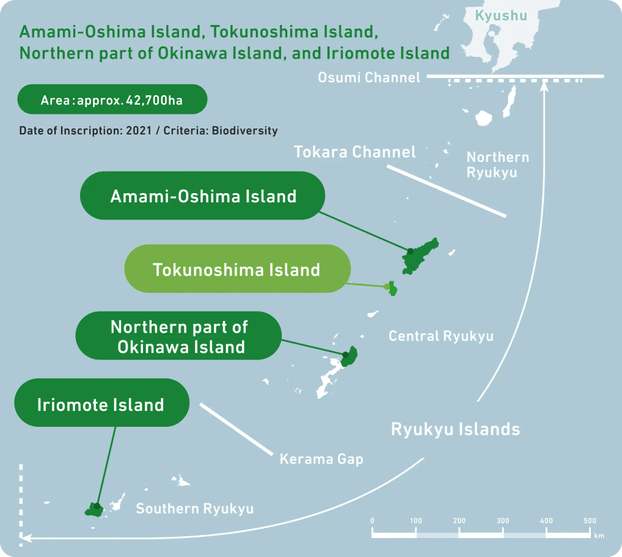 Amami-Oshima Island, Tokunoshima Island, Northern part of Okinawa Island, and Iriomote IslandWorld Natural Heritage Site