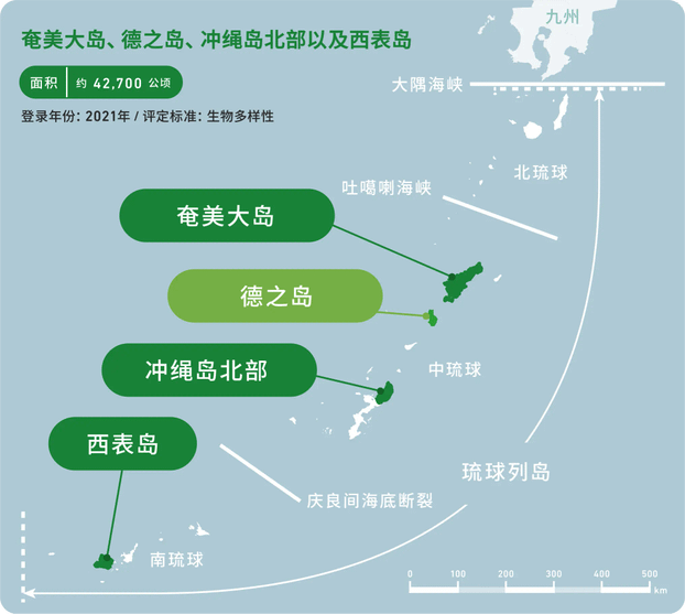 奄美大岛、德之岛、冲绳岛北部以及西表岛